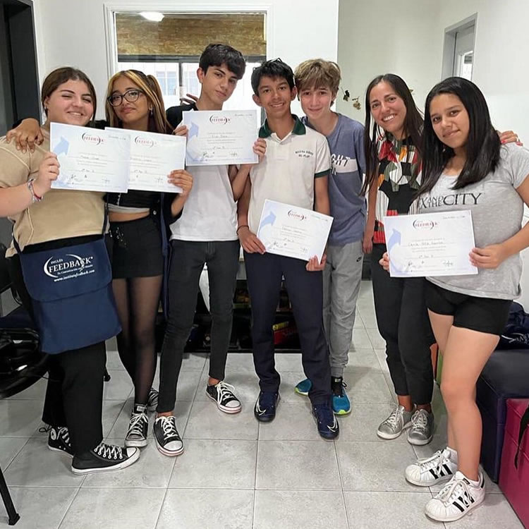 Los cursos de adolescentes se dividen en 6 niveles de un año de duración cada uno. Clases de 60 minutos dos veces por semana.